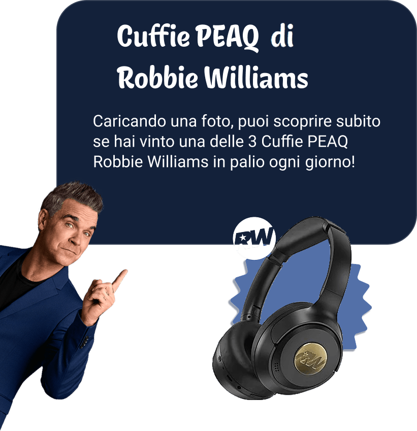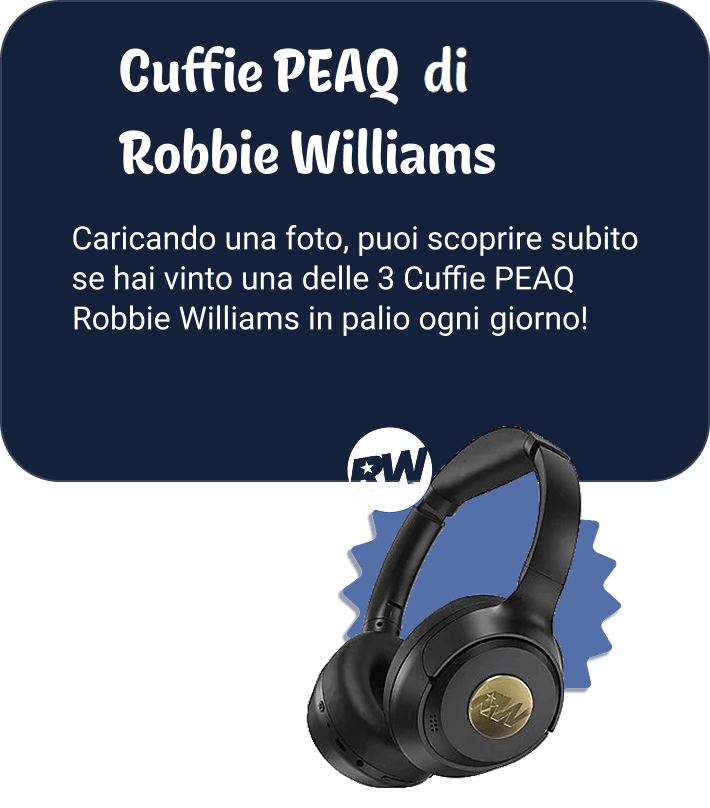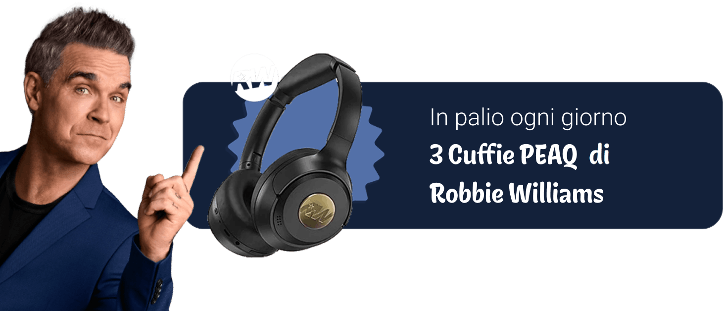 In palio ogni giorno 3 Cuffie PEAQ di Robbie Williams.