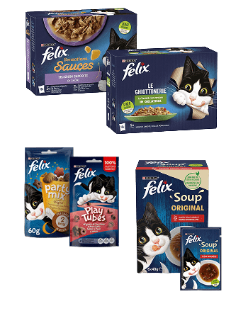 Felix è la linea di alimenti e snack per gatti vivaci e golosi. Scopri tutte le ricette gustose e snacks appetitosi per il tuo amico a 4 zampe!